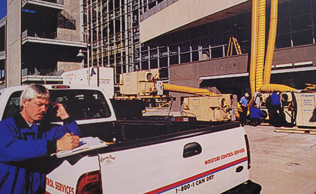 By Saturday, it was clear that the stadium would be ready for the game, but Dickerson had other concerns. He knew that if all the moisture was not removed after a water damage disaster, wallcoverings would loosen, paint blisters, and mold and mildew begin to form. Many times, when drying is not thorough, major reconstruction must be done to reverse new damage and eliminate odors and health concerns arising from biological growth deep within the walls.