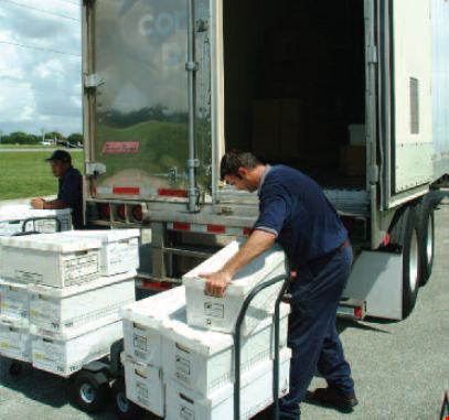 After the water was gone, crews consisting of 60 people began removing the 60,000 volumes. Books were carried out of the basement, loaded into boxes, inventoried, and then placed onto pallets. When a pallet was completed, it was forklifted into a Polygon freezer truck. Once inside, the documents became frozen, eliminating any further damage from the liquid phase of water.
