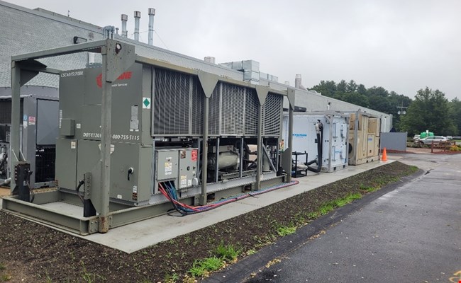 View of a 100% make-up air system to deliver temperature and humidity-controlled air to a client facility for product blending and drying.