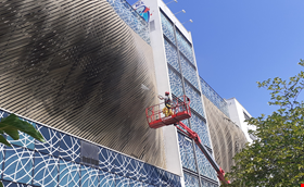 Due to a fire on the third floor, the decorative façade of this building in Grenoble, France, was tarnished by smoke damage. The Polygon France team was assigned to decontaminate the affected building as well as the ground level parking lot that also had been impacted by the fire.