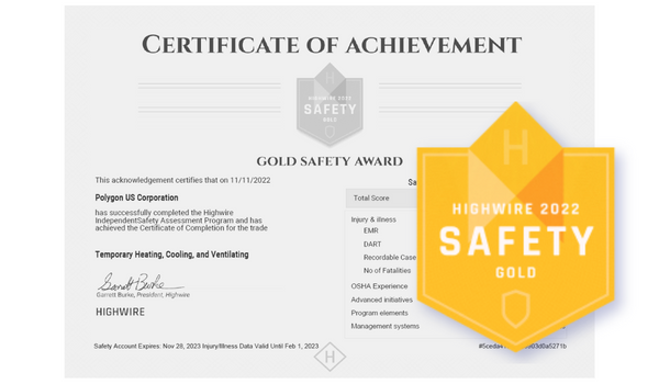 Polygon US has received a Highwire Gold Safety Award, recognising them as a top contractor on the Safest Contractors list. Highwire is an organisation focusing on evaluating the safety aspects of contractors, on a more nuanced level than traditional contractor prequalification standards. We at Polygon are proud that our work, prioritising safety measures, is highlighted with this award.