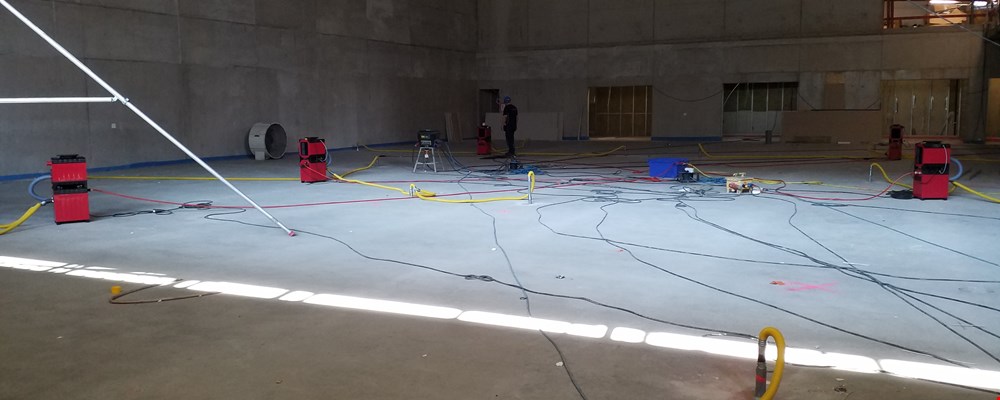 De zomer brengt steeds extremer weer met zich mee. Zinderende hitte wisselt zich af met stevige regenbuien. Dit kan voor ernstige wateroverlast zorgen. Dit was zo ook het geval bij een sportzaal in Brussel. Collega’s Boukhyar el Atmioui en Lieven Lesage hebben het project opgepakt en met de gespecialiseerde apparatuur van onze tijdelijke klimaatcontrole hebben zij de bouw van de gedupeerde instelling snel verder geholpen.