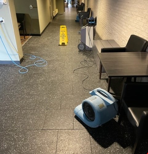 Jaap vertelt: “wij zijn de zondag direct gestart met wegzuigen van het bluswater, het opruimen van de brandresten, het dichtmaken van het dak, het plaatsen van drogers en een eerste reiniging van de keuken en het plaatsen van ontgeuringsapparatuur. Ook hebben we een installateur geregeld om de stroom en gasvoorziening te checken.”