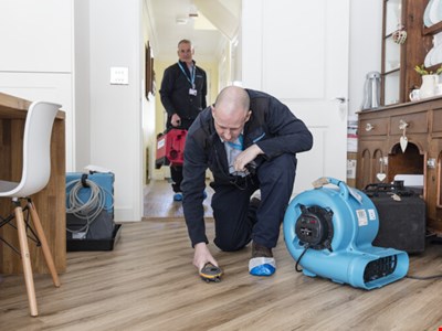 Residual water is pumped away. Furniture and valuables are removed to prevent further damage. Energy-efficient drying and dehumidification equipment, and offsite remote technology is used to monitor the drying process. Additionally, Polygon takes responsibility for restoration, like replacement of wall and floor materials, of the site.