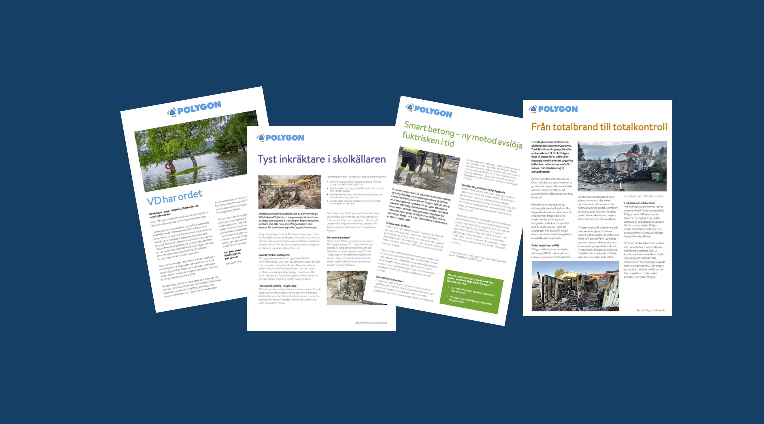 Äkta hussvampangrepp i en skola, våldsam elbilsbrand i garage och ny teknik för säkrare byggprojekt. Ta del av verkliga skadefall, smarta lösningar och innovationer som gör skillnad i byggbranschen. Mer läsning här om Polygon i händelsernas centrum.